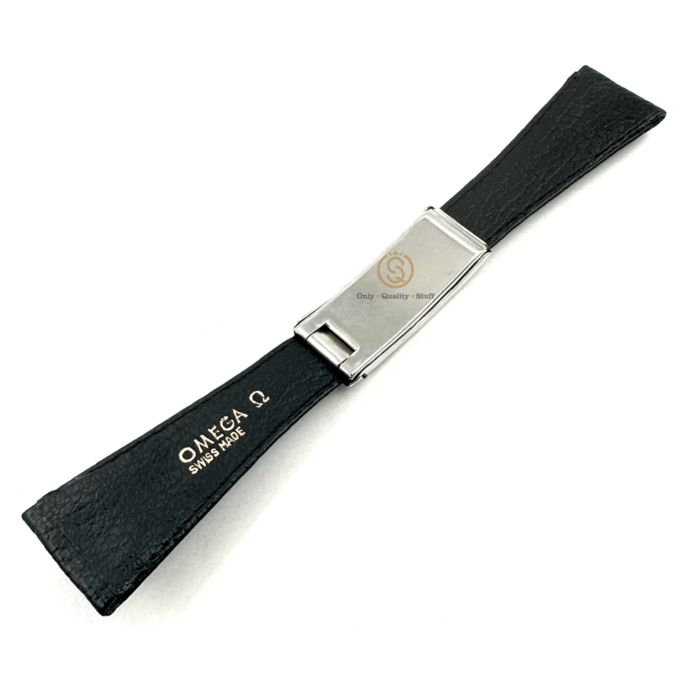 Omega black leather strap with deployant